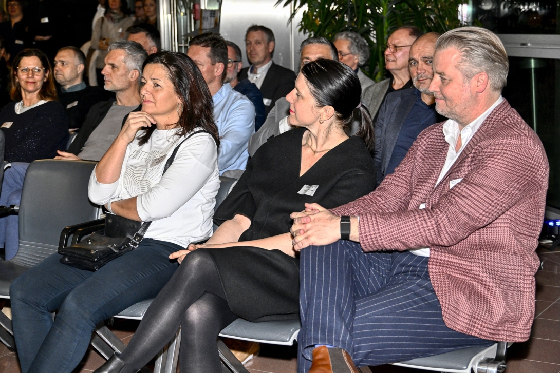Ein Highlight des Abends bildete der Impuls „Zukunftslust – die Kultur der kritischen Zuversicht“. Mit Patrick Rammerstorfer und Katharina Ehrenmüller waren die Gründer:innen des Ministeriums für Neugier & Zukunftslust zu Gast, die mit der Vorstellung ihres Buches Denkanstöße für einen konstruktiven Umgang mit einer zunehmend komplexen Welt gaben. Patrick Rammerstorfer plädierte für eine Haltung des sogenannten Possibilismus, die Herausforderungen realistisch anerkennt, ohne in Resignation zu verfallen, und zugleich Mut macht, Zukunft aktiv zu gestalten. Mit praxisnahen „Futurio-Hacks“ lud Katharina Ehrenmüller im Anschluss dazu ein, die eigene Rolle in der Zukunft bewusster zu reflektieren und ins Tun zu kommen.